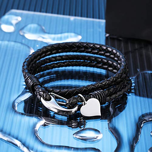 MOWOM Bracciali in Pelle Personalizzati per Uomini Donne Ciondolo Rotondo e a Forma di CuoreIncisione Nome/Data Personalizzato a 2 fili Intrecciati in Vera Pelle Intrecciata (9,0 pollici)