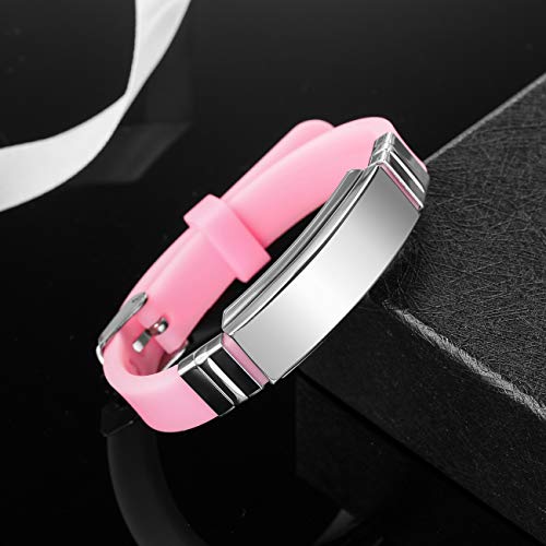 MOWOM Medical Bracciale Personalizzato con Incisione in Silicone Regolabile identificativo Sportivo identificativo per Uomo Donna Bambini Acciaio Inossidabile (Rosa, Addison's Disease)