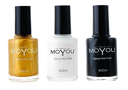 MoYou Nails Bundle Confezione da 3 Smalti per Unghie Nero, Arancione e Trasparente, 3 x 12 ml