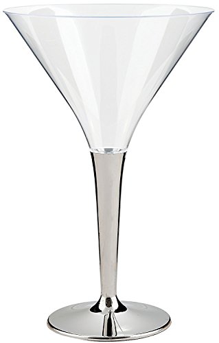 Bicchieri da cocktail in plastica semplici, leggeri e alla moda con stelo e base color argento, ideali per serate e feste