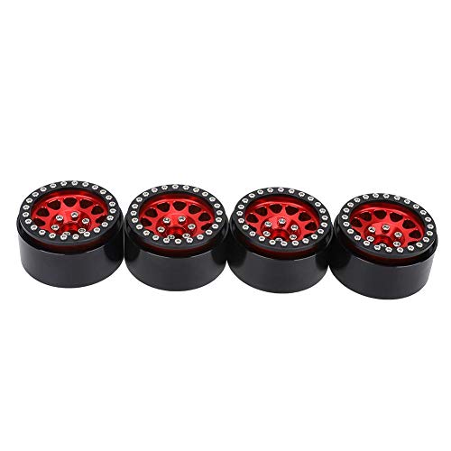 Mozzo ruota per auto Tbest RC, 4 pezzi 1:10 RC Carro cingolato per auto in metallo per pneumatici per mozzi ruota per Axial SCX10/SCX10II/90046/90047(Nero e rosso)