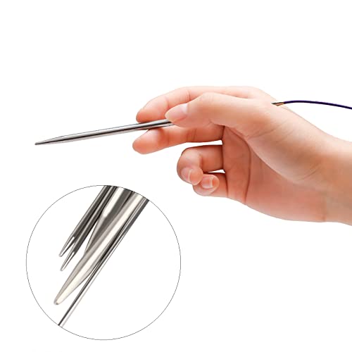 MPEIPILA 11 Pezzi Ferri Circolari da Maglia set 80 cm, Ferri Circolari Lunghi per Lana, Ferri da Maglia Circolari in Acciaio Inossidabile con Astuccio,Ferri Circolari Fissi in Ferro per Principianti