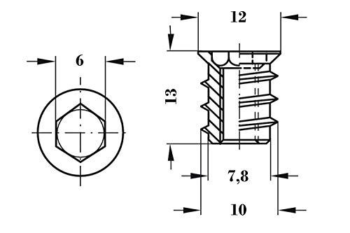 M6 X 13 mm con esagono incassato (esagonale).