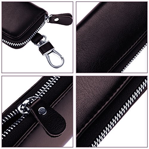 MPTECK @ Marrone Raccoglitore chiave cassa chiave cerniera portafoglio in PU pelle organizzatori Portachiavi Classico Raccoglitore Chiave Cuoio per Uomo e Donne