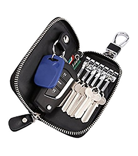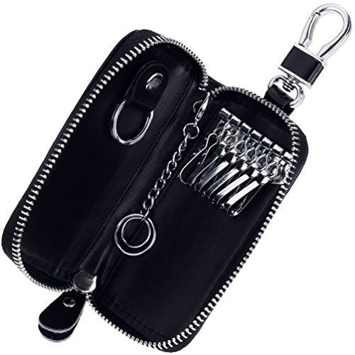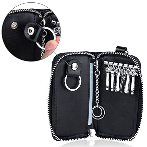 MPTECK @ Nero Raccoglitore chiave cassa chiave cerniera portafoglio in PU pelle organizzatori Portachiavi Classico Raccoglitore Chiave Cuoio per Uomo e Donne