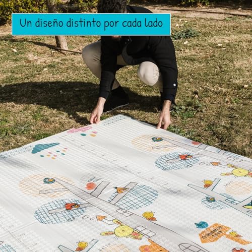 MPZONLINE Tappeto per bambini pieghevole imbottito 200 x 150 cm spessore 1,5 cm double face, impermeabile, lavabile e sicuro