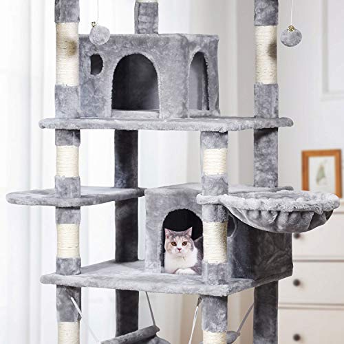 MQFORU Grande Albero Tiragraffi per Gatti in Sisal Naturale con Pali da Graffiare, Amaca, Cesto e Cuccia, 170 cm, Mobile per attività per Gatto (Grigio Chiaro)
