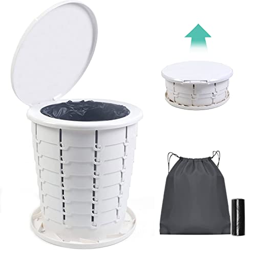 MQFORU WC Portatile per Campeggio,WC Telescopico per Esterni Multifunzione, con 10 Sacchetti per La Pulizia e Borsa per La Conservazione,per La Pesca All'aperto, Campeggio, Escursionismo (Bianco)