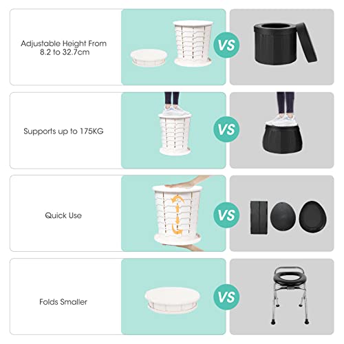 ⛺ 【ALTEZZA REGOLABILE】 La toilette da campeggio pieghevole si apre e si chiude facilmente in pochi secondi, grazie alla quale puoi regolare liberamente qualsiasi altezza desideri da 8,2 cm a 32,7 cm. Che siano anziani o bambini, uomini o donne, possono sempre trovare un'altezza comoda per se stessi.Se ritenete che l'altezza di 32,7 cm sia troppo bassa, potete scegliere un altro modello (Nero-2), che può essere esteso a 50 cm.
