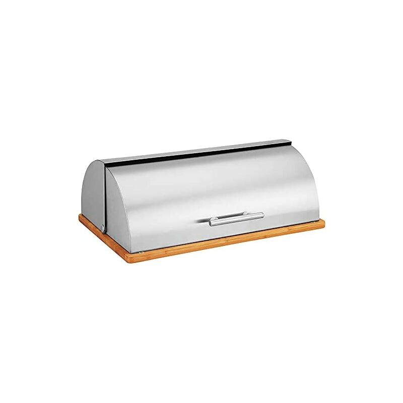 MR-1672S Contenitore da tavolo per pane, coperchio scorrevole, contenitore per pane e pasticceria viennese, design elegante, acciaio inox, legno, contenitore per pane - Maestro