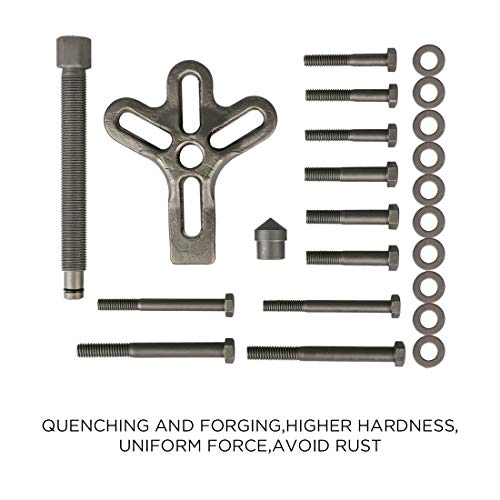 Forza uniforme: il design del separatore del volante consente alle persone di rimuovere facilmente il bilanciatore armonico, la puleggia del cambio, il volante e la puleggia dell'albero motore con esso. Inoltre, lo strumento applicherà una pressione uniforme durante l'uso per evitare che le parti vengano danneggiate.