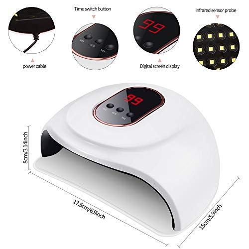 Adatto per tutti gli smalti in gel: le luci a LED sono la tecnologia più recente e con la loro doppia lunghezza d'onda di 365 nm + 406 nm possono essere utilizzate su TUTTI gli smalti UV e LED, possono essere asciugate per applicare rapidamente tutti i tipi di smalto, strass e colla indurente. ad esempio, strato di base, rivestimento superiore, gel colorato, gel duro, gel costruttore, acrilico, gel modellante, colla gemma e molti altri.