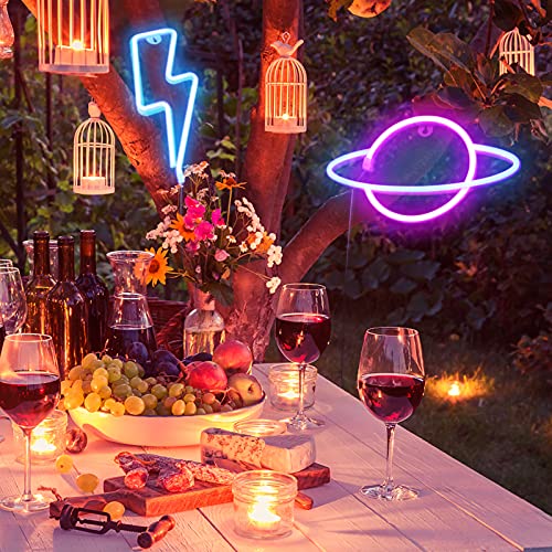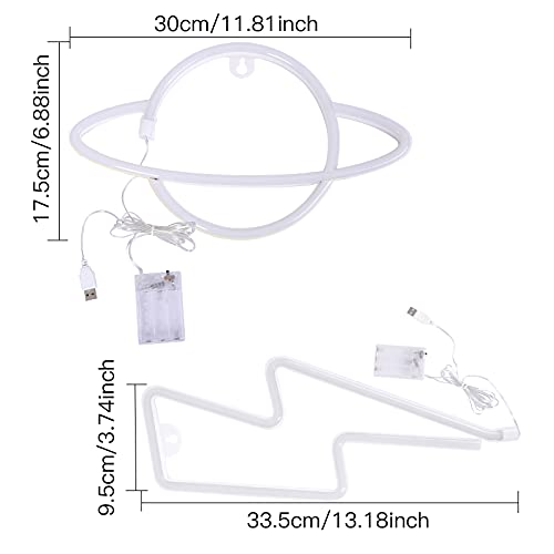 Mreechan luci al neon,Lampada/insegna decorativa da parete,Luci al neon per camera da letto, sala giochi, bar e feste, idea regalo per bambini. (fulmine e pianeta)