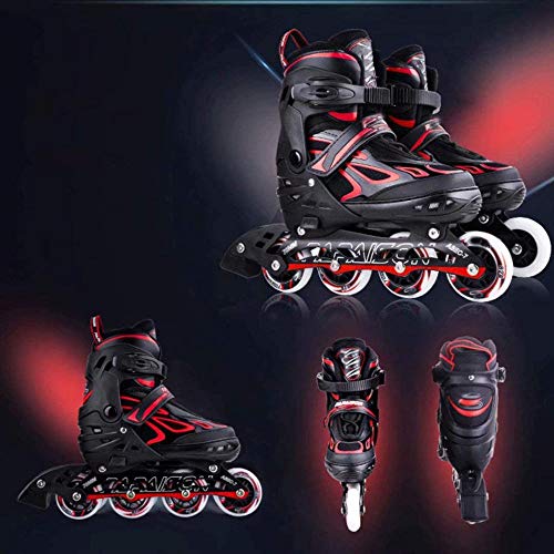 MRFYD Ragazzi Ragazze Regolabili Pattini in Linea per Bambini e Principianti Adulti con Le Ruote di Illuminazione Roller Blade Boots Pattini a Rulli da Esterno Indoor Rosso_L (38-43EU;