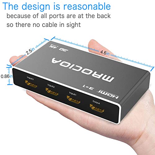 Mrocioa HDMI Switch 4K 3 in 1 out Automatico, Splitter HDMI 4K Hdmi Switcher Swtich con Telecomando Supporta PS4/Xbox One/Fire TV/Apple TV/SKY BOX/STB/DVD/Laptop/Roku.