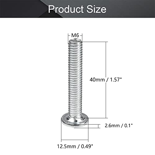 dimensioni filettatura: M6 x 40 mm, diametro cappello: 12,5 mm, spessore cappello: 2,6 mm, lunghezza vite: 40 mm