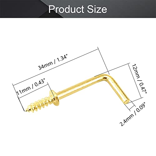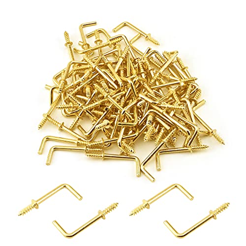 MroMax 100 ganci a vite dorati da 7/8 "Ganci a forma di L in acciaio al carbonio 1 forma ganci ad angolo retto placcati in ottone 7 ganci a vite autofilettanti per casa sul posto di lavoro ufficio