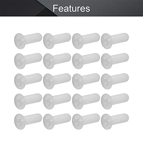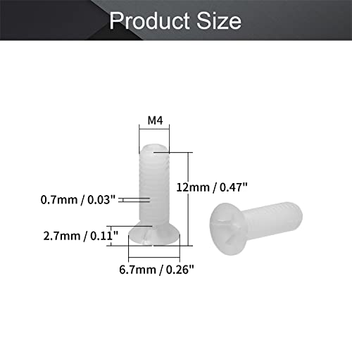 MroMax M4 Lunghezza 12 mm Nylon Bianco Testa Piatta Macchina Vite Svasata Plastica Croce Incassato Testa Metrica Bulloni 100 Pz