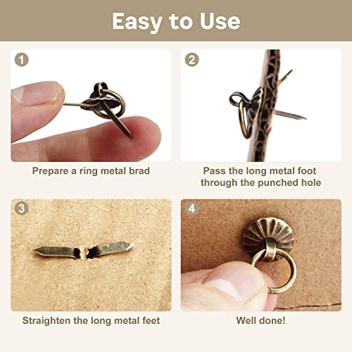 MroMax 50 pezzi di fissaggio in metallo Brad Mini Pull Ring Handle fai da te artigianato decorazione per scatola di gioielli decorativa cassettiera cassetto armadio o piccoli diari bronzo