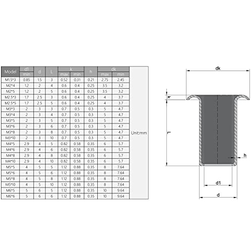 MroMax - 200 rivetti in rame M1.53 con foro passante per circuiti stampati, dorati, MRO1900906N-0286, M5 x 5, 200PCS