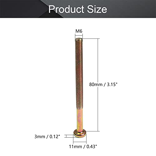 MroMax M6 x 80 mm a testa piatta viti per mobili bulloni di fissaggio in acciaio al carbonio colorato, 10 pezzi