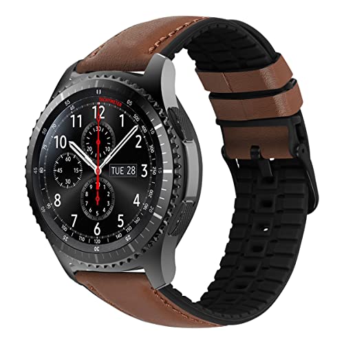 MroTech Cinturino 22mm Compatibile con Samsung Gear S3 Frontier/Galaxy Watch 46 mm/Watch 3 45mm Banda di Ricambio per Huawei Watch GT/GT2/2 Pro/2e/GT3 46mm Bracciale 22 mm,Pelle Marrone Silicone Nero