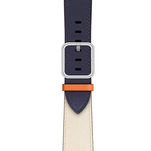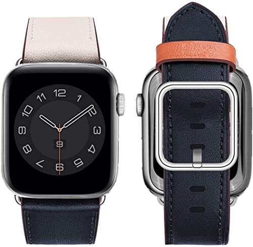 MroTech Cinturino Compatibile per Apple Watch Ultra 49mm 45mm 44mm 42mm Cinturini Serie 9/8/7/6/5/4/3/2/1 42 44 45 49 mm Watch Band Bracciale Vera Pelle Cuoio Loop Indigo con Fibbia Quadrata Argento