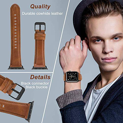 Cinturino in pelle vintage marrone con fermaglio in metallo nero e connettori / adattatori in nero, facilita l'installazione e il cambio delle fasce, sostituisce la iwatch band 38 mm e la iwatch 40 mm banda facilmente e direttamente.