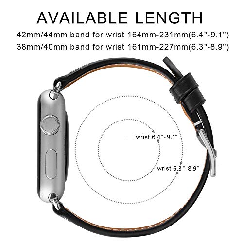 Dimensioni: spessore 2,3 mm. Cinturino iwatch 42mm/44mm/45mm/49mm, adatto per 192 mm a 234 mm (da 6,7 a 8,9 pollici). Cinturino iwatch 38mm/40mm/41mm, adatto per 188 mm a 230 mm (da 6,6 a 8,7 pollici). Bracciale in vera pelle 100%: questo braccialetto per Apple Watch è realizzato in vera pelle di vacchetta di alta qualità, morbido e delicato sulla pelle, comodo da indossare.