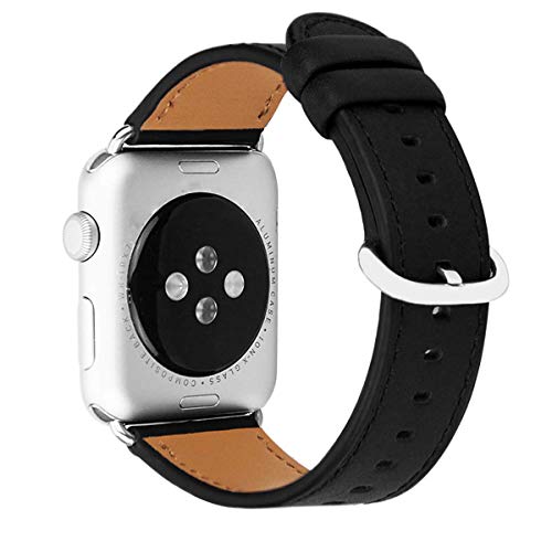 MroTech Compatibile per iWatch Serie 4 44mm Cinturino 42mm in Vera Pelle Bracciale da Polso Sostituzione per iWatch Series 5 Serie 4 Serie 3 Serie 2 Serie 1 (42 mm/ 44 mm, Nero)