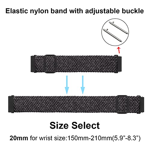 MroTech Compatibile con Samsung Galaxy Active/Active2/Galaxy Watch 4/4 Classic/5/5 Pro Cinturino 20 mm per Huawei Watch GT3 42 mm Braided Nylon Loop Bip/GTS/GTR 42mm Bracciali Elastica-Mix Grigio