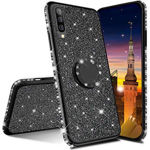 MRSTER Compatibile con Samsung Galaxy A6+ Custodia Glitter Bling Scintillante Brillantini Custodia con Ring Kickstand Rotante a 360 Gradi Donna Cover per Samsung Galaxy A6 Plus 2018. Black