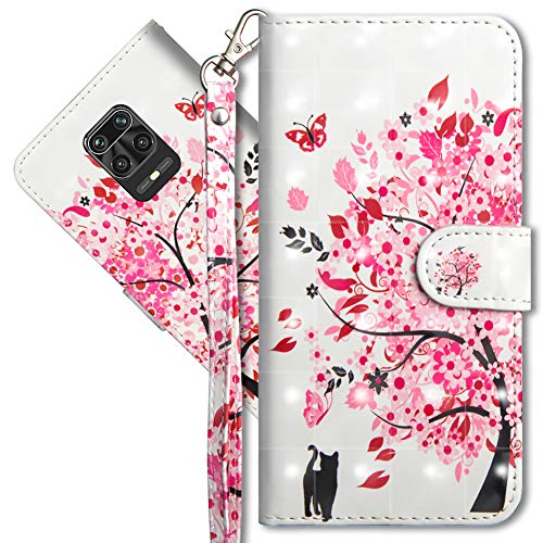 MRSTER Compatibile con Xiaomi Redmi Note 9S Custodia, Creativo 3D Design [Funzione Stand] [Magnetica] [Slot Carte] Flip Pelle PU Cover Protettiva Caso per Redmi Note 9S. YX 3D Tree Cat