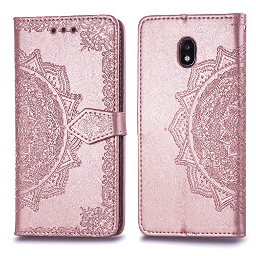 MRSTER Cover Compatibile con Samsung Galaxy J3 2017, Flip Case Premium Protettiva Portafoglio PU Pelle Custodia per Samsung Galaxy J3 2017 J330. SD Mandala Rose Gold