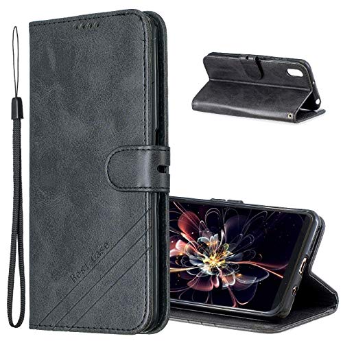 MRSTER Cover per Huawei Y5 2019 in pelle PU Flip Cover Premium PU Pelle Cover Compatibile con Huawei Y5 2019 / Honor 8S. HX Retro Black