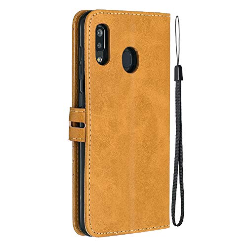 MRSTER Cover per Samsung Galaxy A20e, Semplice ed Elegante Book Style Internamente Silicone TPU Case Flip Cover in Pelle PU Premium Custodia per Samsung Galaxy A20e. Retro Yellow