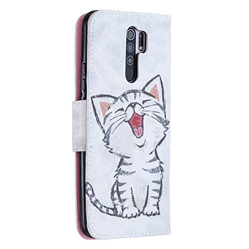 MRSTER Cover per Xiaomi Redmi 9, Moda Bello Custodia a Libro in Pelle PU Flip Portafoglio Custodia Shockproof Resistente Case per Xiaomi Redmi 9. HX Smile Cat