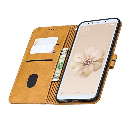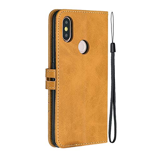 MRSTER Cover per Xiaomi Mi A2, Semplice ed Elegante Book Style Internamente Silicone TPU Case Flip Cover in Pelle PU Premium Custodia per Xiaomi Mi A2 / Xiaomi Mi 6X. Retro Yellow