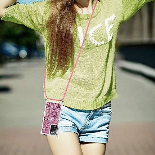 MRSTER Custodia con Collana per Samsung Galaxy Note 20 Ultra, Brillantini Liquido Sabbie Mobili Bumper TPU Case con Cordino Cinturino Lanyard Cover per Galaxy Note 20 Ultra. LP Love Rose