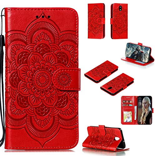 MRSTER LG K30 Custodia Flip, Goffratura Design Case in PU Pelle Internamente Silicone TPU Cover Portafoglio Cover Premium Custodia per LG K30 2019. LD Mandala Red