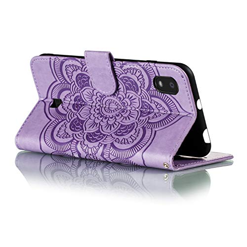 MRSTER LG K20 Custodia Flip, Goffratura Design Case in PU Pelle Internamente Silicone TPU Cover Portafoglio Cover Premium Custodia per LG K20 2019. LD Mandala Purple