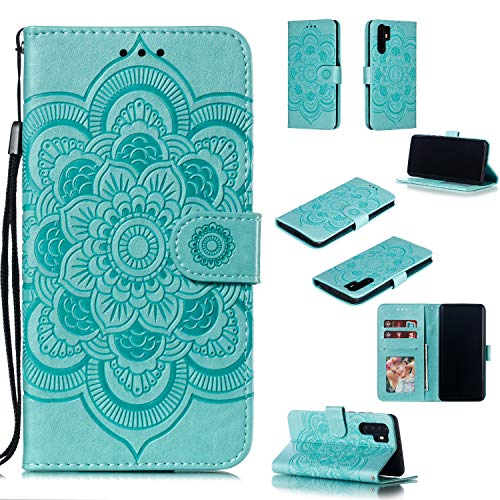 MRSTER Huawei P30 PRO Custodia Flip, Goffratura Design Case in PU Pelle Internamente Silicone TPU Cover Portafoglio Cover Premium Custodia per Huawei P30 PRO. LD Mandala Green