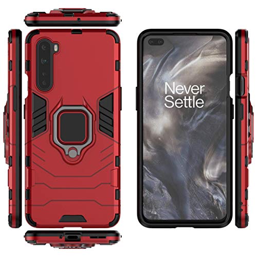 MRSTER OnePlus Nord Custodia, Armor Custodia con 360 Gradi Girevole Anello, Silicone TPU e PC Doppio Strato Bumper Protettiva Cover per OnePlus Nord 5G. HB Red