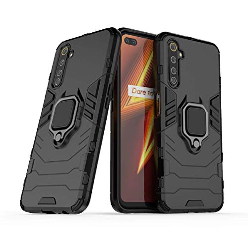 MRSTER Realme 6 PRO Custodia, Armor Custodia con 360 Gradi Girevole Anello, Silicone TPU e PC Doppio Strato Bumper Protettiva Cover per Realme 6 PRO. HB Black