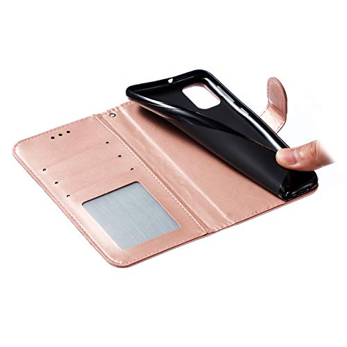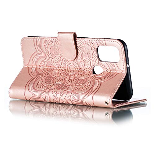 MRSTER Samsung Galaxy M30s Custodia Flip, Goffratura Design Case in PU Pelle Internamente Silicone TPU Cover Portafoglio Cover Premium Custodia per Samsung Galaxy M30s. LD Mandala Rose Gold