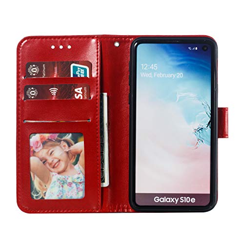 MRSTER Samsung Galaxy S10e Custodia Flip, Goffratura Design Case in PU Pelle Internamente Silicone TPU Cover Portafoglio Cover Premium Custodia per Samsung Galaxy S10e. LD Mandala Red
