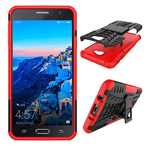 MRSTER Samsung J7 Prime Custodia, [Heavy Duty Protezione] [Dual Layer] Difficile Silicone Kickstand Ibrida Shock Proof Cover Custodia Compatibile Samsung Galaxy J7 Prime. Hyun Red