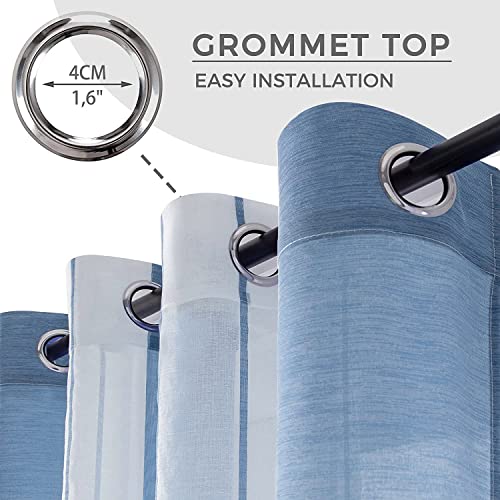 MRTREES Tende per Interni con Occhiello a Strisce Verticali Semi Trasparente per Cameretta Bambini Tenda Leggera Elegante per Camera da Letto Soggiorno Moderna 2 Pezzi Bianco+Azzurro 140x280 CM