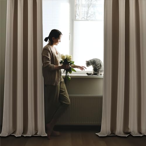 MRTREES Tende Oscuranti per Interni Termiche Isolanti con Fettuccia Tenda Coprente per Camera da Letto e Soggiorno Moderne Finestra Salotto Tende Confezionate Set 2 Pezzi 140x122 CM Beige