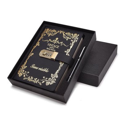 Mruiks formato A5 vintage Lock notebook PU password notebook diario con lucchetto a combinazione ricaricabili Student Book NPN114 Black with pen and gift box